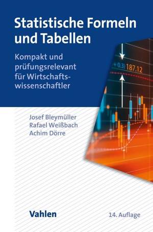 Prof. Dr. Josef Bleymüller war Direktor des Instituts für Ökonometrie und Wirtschaftsstatistik der Universität Münster. Prof. Dr. Rafael Weißbach ist Inhaber des Lehrstuhls für Statistik und Ökonometrie am Institut für Volkswirtschaftslehre der Universität Rostock, an dem auch Dr. Achim Dörre als wissenschaftlicher Mitarbeiter tätig war. Dieses Standardwerk umfasst die zwei Teile Statistische Formeln und die für praktische Berechnungen benötigten Statistischen Tabellen. Vom Inhalt und Umfang entsprechen sie dem Rahmen einer typischen Bachelorausbildung in Statistik für Wirtschaftswissenschaftler. Damit eignen sie sich sehr gut zur Verwendung in statistischen Prüfungen und machen die Herausgabe gesonderter Klausurhilfsblätter weitgehend überflüssig. Das Lehrbuch zur Formelsammlung: Bleymüller/Weißbach/Dörre, Statistik für Wirtschaftswissenschaftler Das Übungsbuch zur Formelsammlung: Bleymüller/Weißbach/Dörre, Übungen zur Statistik für Wirtschaftswissenschaftler