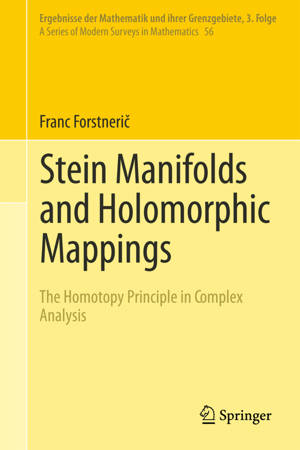 The main theme of this book is the homotopy principle for holomorphic mappings from Stein manifolds to the newly introduced class of Oka manifolds. The book contains the first complete account of Oka-Grauert theory and its modern extensions, initiated by Mikhail Gromov and developed in the last decade by the author and his collaborators. Included is the first systematic presentation of the theory of holomorphic automorphisms of complex Euclidean spaces, a survey on Stein neighborhoods, connections between the geometry of Stein surfaces and Seiberg-Witten theory, and a wide variety of applications ranging from classical to contemporary.