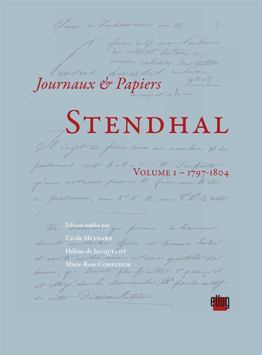 Ce premier tome correspond à la première période de sa vie, jusqu'en avril 1804 (date de son troisième voyage à Paris). Durant celle-ci, Stendhal tient en parallèle quelques journaux et des cahiers de pensées auxquels s'ajoutent des projets littéraires et divers documents tels que listes de livres, comptes ou inventaires. C'est ainsi sa table de travail, correspondant à toute une mise en scène identitaire, que donne à voir cette édition. Une telle mosaïque de documents permet de récuser le mythe d'une continuité de l'écrit stendhalien tout en rendant visibles les liens complexes entre les différents éléments qui le composent. Le lecteur pourra percevoir particulièrement les échos entre écrits de théâtre et pensées qui légitiment le choix de les mettre en regard dans un même volume. Quant à la publication d'inédits (notes de cours de l'École centrale de l'Isère, extraits de traductions), elle permet de mieux cerner la formation et les méthodes de travail du jeune homme.