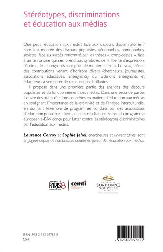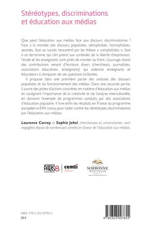 Que peut l'éducation aux médias face aux discours discriminatoires ? Ces contributions d'horizons divers (chercheurs, journalistes, associations éducatives, enseignants) aideront enseignants et éducateurs à s'emparer de ces questions brûlantes. Il propose dans une première partie des analyses des discours populistes et du fonctionnement des médias. Dans une seconde partie, il ouvre des pistes d'actions concrètes en matière d'éducation aux médias en donnant l'exemple de programmes conduits par des associations d'éducation populaire. Il livre enfin les résultats en France du programme européen e-EAV conçu pour lutter contre les stéréotypes discriminatoires par l'éducation aux médias.