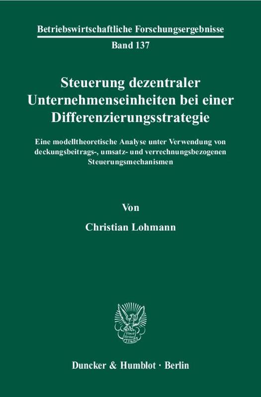 Die Steuerung von dezentralen Unternehmenseinheiten gewährleistet, dass trotz delegierter Entscheidungskompetenzen übergreifende Aufgaben erfüllt und Unternehmensziele erreicht werden. Für eine zweck- und zielgerichtete Unternehmenssteuerung sind hierfür die Eigenarten der zu steuernden Unternehmenseinheiten sowie die Beziehungen zwischen diesen zu beachten. Unter Berücksichtigung der Differenzierung als unternehmensübergreifende Wettbewerbsstrategie zeigt Christian Lohmann in dieser modelltheoretischen Untersuchung für zwei unterschiedliche Wertschöpfungsstrukturen, dass deckungsbeitrags- und umsatzbezogene Teilungsmechanismen im Vergleich zu verrechnungsbezogenen Preismechanismen eine effizientere Steuerung sowohl zwischen dezentralen Unternehmenseinheiten als auch zwischen unabhängigen Unternehmen hervorrufen können. Als Ergebnis werden Anwendungsbereiche der untersuchten Steuerungsmechanismen angegeben und beispielhaft verdeutlicht.