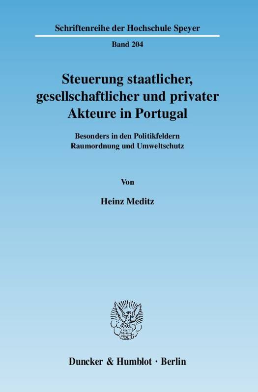 Staat und Gesellschaft in Portugal haben sich in den letzten Jahren durch Demokratisierung und EU-Beitritt stark verändert. Ziel dieser Untersuchung ist es, das portugiesische Staatswesen aus verwaltungswissenschaftlicher Sicht strukturiert darzustellen. In Anlehnung an den akteurzentrierten Institutionalismus werden dafür Konstellation und Steuerungsbeziehungen zwischen der EU und dem portugiesischen Nationalstaat sowie kommunalen, gesellschaftlichen und privaten Akteuren untersucht. Basierend auf portugiesischer Literatur, Archivmaterial und Interviews werden dabei im Detail die Politikfelder Raumordnung und Umweltschutz analysiert.