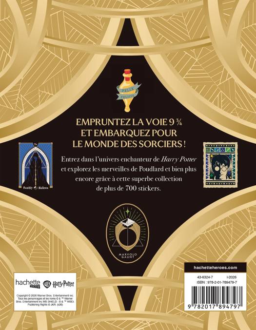 Empruntez la voie 9 3/4 et embarquez pour le monde des sorciers ! Entrez dans l'univers enchanteur de Harry Potter et explorez les merveilles de Poudlard et bien plus encore grâce à cette superbe collection de plus de 700 stickers.