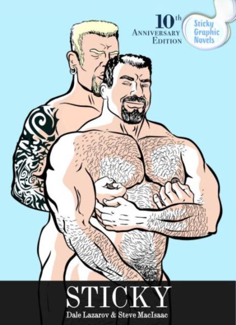 Sticky is the groundbreaking collection of character based, body-positive tales of man-on-man carnality and sweetness written by Dale Lazarov and drawn by Steve MacIsaac - now in its 10th anniversary of publication! TimeOut Chicago says "carnality and sweetness is the exactly the right combination that makes Sticky a real standout in the genre. Readers will find the material is hot and unabashedly romantic." Pop Matters notes that "by abandoning political screeds or stories about shame, secrets, family acceptance, and all the other storylines that are used over and over again, Sticky makes a powerful political statement: this is normal." Sticky features several comic stories that, while incredibly hot and masculine, show how gay men not only just hook up: they connect. In "Hold On", a casual street fair hook up between two hot guys turns into an extended challenge to see how far they can go while delaying climax. And they go pretty far! "Talk Show Queers" looks into what happens to the gorgeous gay rodeo star after he's been brutally dumped by a boyfriend who declares himself straight in front of a talk show audience: the cowboy gets picked up by the hot, burly security guy sitting front row center. Naturally, they get down to some sticky business... In "Treats", a hot, butch pirate and a muscle-bound monk meet at a grad school Halloween party. Trick or treat? Both, if it's good! Unzipped agrees: "What's cool about [Sticky's] man-on-man comic action is that it's not just hot, it's also friendly, and, well, versatile."