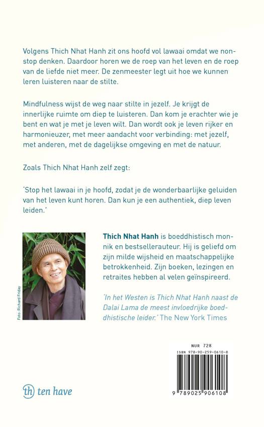 Zoals Thich Nhat Hanh zelf zegt: ‘Stop het lawaai in je hoofd, zodat je de wonderbaarlijke geluiden van het leven kunt horen. Dan kun je een authentiek, diep leven leiden'.