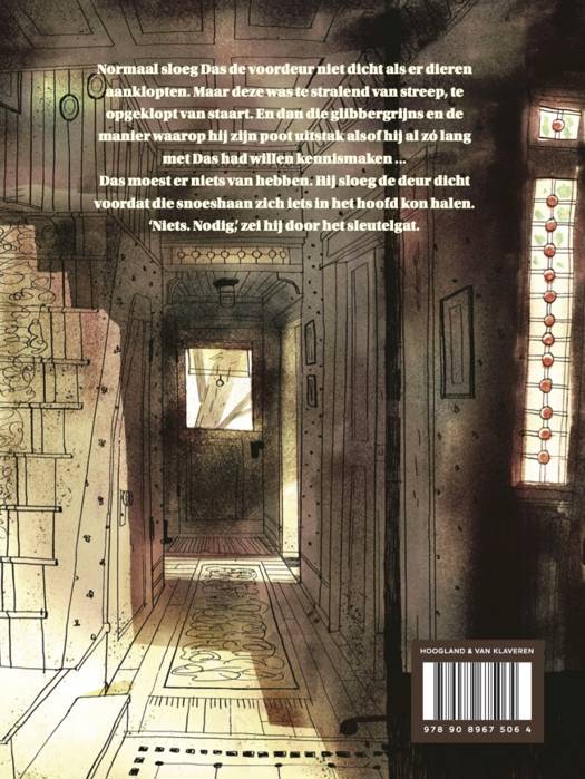 Normaal sloeg Das de voordeur niet dicht als er dieren aanklopten. Maar deze was te stralend van streep, te opgeklopt van staart. En dan die glibbergrijns en de manier waarop hij zijn poot uitstak alsof hij al zó lang met Das had willen kennismaken ... Das moest er niets van hebben. Hij sloeg de deur dicht voordat die snoeshaan zich iets in het hoofd kon halen. 'Niets. Nodig,' zei hij door het sleutelgat.