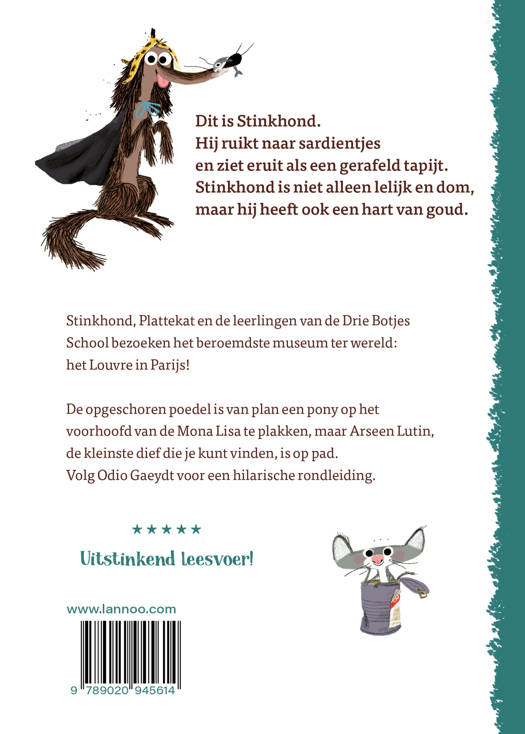 Stinkhond, Plattekat en de leerlingen van de Drie Botjes-School bezoeken het beroemdste museum ter wereld: het Louvre in Parijs! De opgeschoren poedel is van plan een pony op het voorhoofd van de Mona Lisa te plakken, maar Arseen Lutin, de kleinste dief die je kunt vinden, is op pad. Volg Odio Gaeydt voor een hilarische rondleiding.