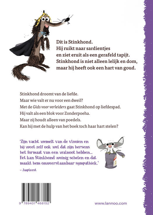 Dit is Stinkhond. Hij ruikt naar sardientjes en ziet eruit als een gerafeld tapijt. Stinkhond is niet alleen lelijk en dom, maar hij heeft ook een hart van goud. Stinkhond droomt van de liefde. Maar wie valt er nu voor een dweil? Met de Gids voor verleiders gaat Stinkhond op liefdespad. Hij valt als een blok voor Zonderpoeha. Maar zij houdt alleen van poedels. Kan hij met de hulp van het boek toch haar hart stelen?