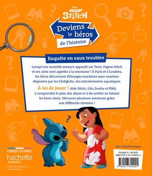 Résumé : Lorsqu’une nouvelle menace apparaît sur Terre, l’agent Stitch et ses amis sont appelés à la rescousse ! À Paris et à Londres, les héros découvrent d’étranges machines sous-marines disposées par les Glubglubs, des extraterrestres aquatiques. À toi de jouer ! Aide Stitch, Lilo, Jumba et Pikly à comprendre le plan des aliens et à les arrêter en faisant les bons choix. Découvre plusieurs aventures grâce aux différents chemins !
