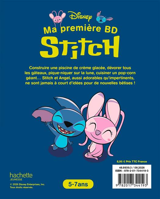 Le résumé :Construire une piscine de crème glacée, dévorer tous les gâteaux, pique-niquer sur la lune, cuisiner un pop-corn géant… Stitch et Angel, aussi adorables qu’impertinents, ne sont jamais à court d’idée pour de nouvelles bêtises !