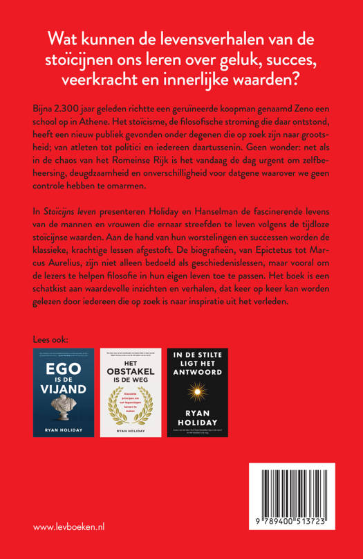 In Stoïcijns leven presenteren Holiday en Hanselman de fascinerende levens van de mannen en vrouwen die ernaar streefden te leven volgens de tijdloze stoïcijnse waarden. Aan de hand van hun worstelingen en successen worden de klassieke, krachtige lessen afgestoft. De biografieën, van Epictetus tot Marcus Aurelius, zijn niet alleen bedoeld als geschiedenislessen, maar vooral om de lezer te helpen filosofie in hun eigen leven toe te passen. Het boek is een schatkist aan waardevolle inzichten en verhalen, dat keer op keer kan worden gelezen door iedereen die op zoek is naar inspiratie uit het verleden.