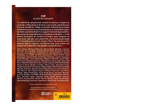 Un collectif de soixante-huit auteurs et autrices a frappé à la porte de La Manufacture de livres. Leur projet, présenté sous forme de manifeste : rédiger un recueil, s’associer pour penser la littérature comme un acte de résistance, se rassembler autour de textes qui deviendraient un support à des échanges publics, des temps de rassemblement en festivals et librairies :