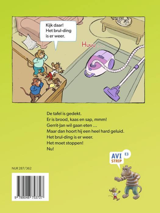 Aan tafel allemaal! Gezellig samen eten, of toch niet? Een hard geluid zorgt voor onrust. Wat is er toch aan de hand? Er is maar één manier om daar achter te komen: lees deze AVI E3 strip van Pascal Oost en Donald Duck-tekenaar Wilma van den Bosch (winnaar Stripschapprijs 2024). AVI strips geven beginnende lezers leesplezier en ze breiden hun woordenschat uit. De illustraties helpen kinderen om nieuwe woorden in de tekst te begrijpen.