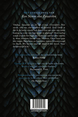 Zijn zusters zijn verdwenen, dood of overgeleverd aan de grillen van de wrede kind-koning Joffry, die met ijzeren vuist vanuit Koningslanding regeert. Joffry’s bittere rivaal, heer Stannis Baratheon, is verslagen en in schande gehuld, slachtoffer van een tovenares die hem in haar kwaadaardige greep houdt. En dat allemaal terwijl de verbannen koningin Daenerys zich een weg baant over een van bloed doordrenkt continent, met drie draken als haar metgezellen.