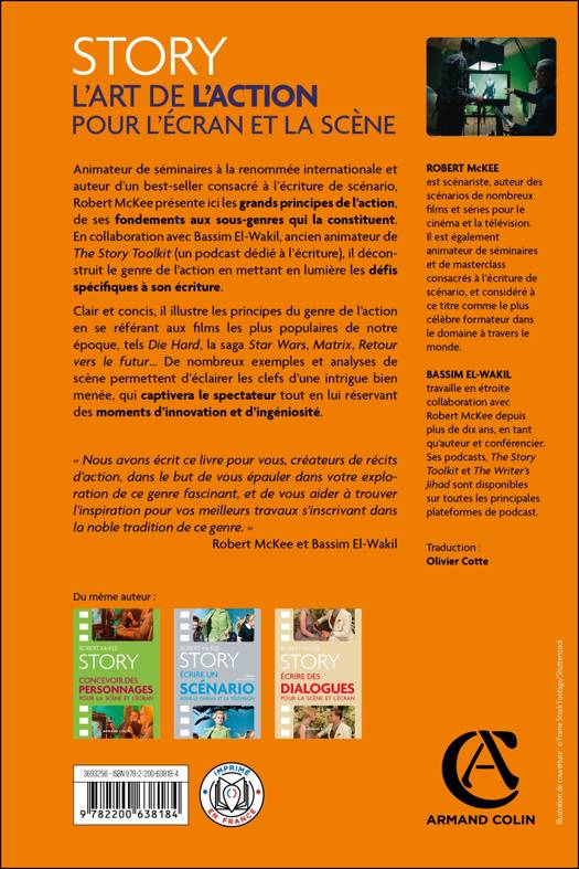 Animateur de séminaires à la renommée internationale et auteur d’un best-seller consacré à l’écriture de scénario, Robert McKee présente ici les grands principes de l’action, de ses fondements aux sous-genres qui la constituent. En collaboration avec Bassim El-Wakil, ancien animateur de The Story Toolkit (un podcast dédié à l’écriture), il déconstruit le genre de l’action en mettant en lumière les défis spécifiques à son écriture. Clair et concis, il illustre les principes du genre de l’action en se référant aux films les plus populaires de notre époque, tels Die Hard, la saga Star Wars, Matrix, Retour vers le futur… De nombreux exemples et analyses de scène permettent d’éclairer les clefs d’une intrigue bien menée, qui captivera le spectateur tout en lui réservant des moments d’innovation et d’ingéniosité.
