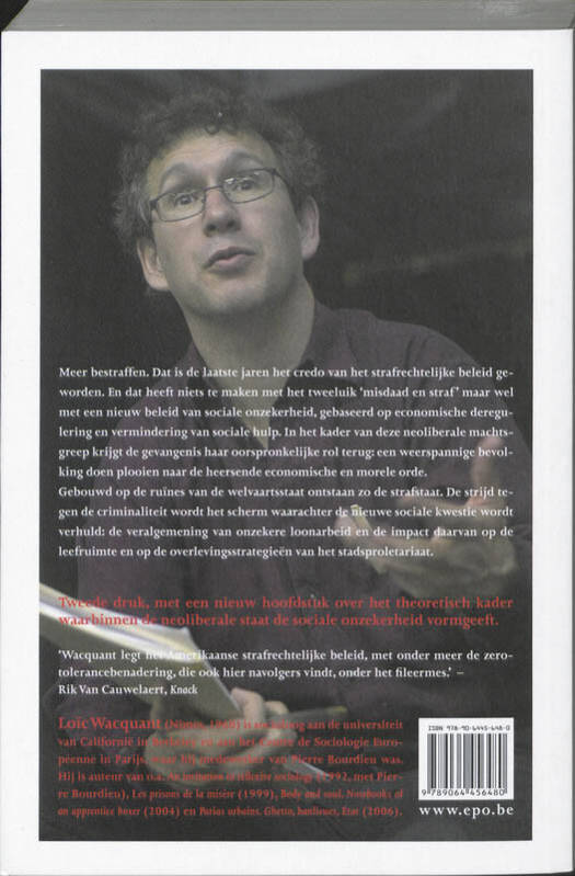 Meer bestraffen. Dat is de laatste jaren het credo van het strafrechtelijke beleid geworden. En dat heeft niets te maken met het tweeluik 'misdaad en straf' maar wel met een nieuw be-leid van sociale onzekerheid, gebaseerd op economische deregulering en vermindering van sociale hulp. In het kader van deze neoliberale machtsgreep krijgt de gevangenis haar oor-spronkelijke rol terug: een weerspannige bevolking doen plooien naar de heersende economi-sche en morele orde. Gebouwd op de ruïnes van de welvaartsstaat ontstaan zo de strafstaat. De strijd tegen de cri-minaliteit wordt het scherm waarachter de nieuwe sociale kwestie wordt verhuld: de veralge-mening van onzekere loonarbeid en de impact daarvan op de leefruimte en op de overlevings-strategieën van het stadsproletariaat.