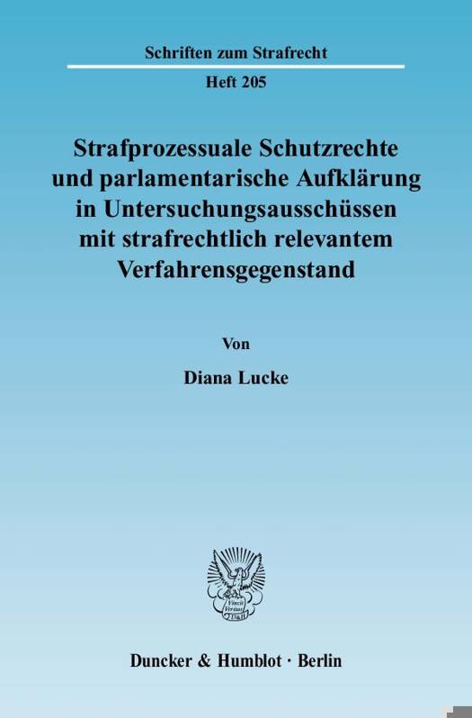 Untersuchungsausschüsse haben oft strafrechtlich relevante Vorgänge zum Gegenstand, wobei nicht selten der umfassenden Sachaufklärung die Auskunftsverweigerung durch Betroffene wegen einer Selbstbelastungsgefahr entgegensteht. Diana Lucke bestimmt die Rechtsstellung des Betroffenen vor dem Ausschuss und den Umfang seines Mitwirkungsverweigerungsrechts sowie Inhalt und Grenzen des parlamentarischen Beweiserhebungsrechts. Sie untersucht eingehend, ob die strafprozessualen Schutzrechte eines von einer parlamentarischen Untersuchung Betroffenen beeinträchtigt werden, und entwickelt Lösungen, um die widerstreitenden Interessen der parlamentarischen Aufklärung, der Gewährleistung der strafprozessualen Schutzrechte des Betroffenen und der Durchsetzung des staatlichen Strafanspruchs auszugleichen. Im Ergebnis befürwortet sie u. a. eine obligatorische Strafmilderung, wenn der Betroffene freiwillig selbstbelastend vor dem Ausschuss aussagt, statt die Auskunft zu verweigern.