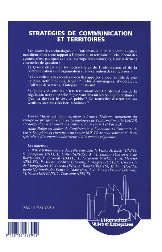 Études consacrées à l'impact des nouvelles technologies de l'information et de la communication sur la répartition spatiale des activités et des hommes. Stratégies des acteurs : entreprises, collectivités locales, politiques publiques.