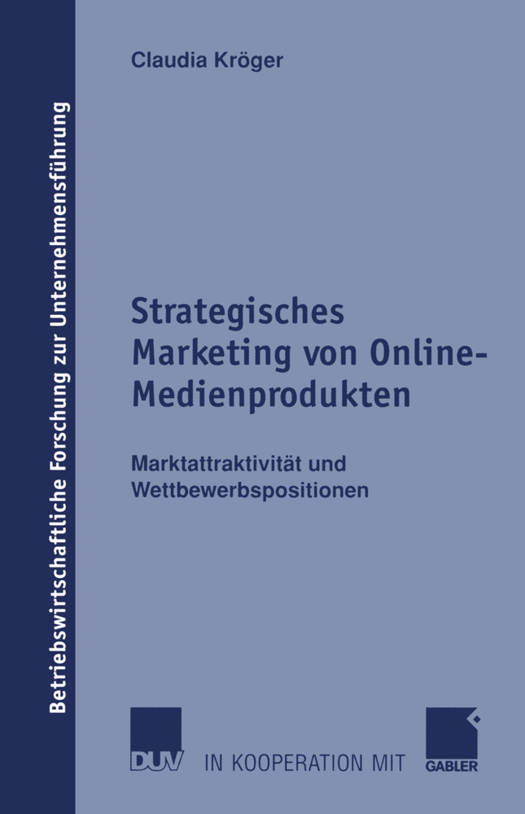 Claudia Kröger präsentiert einen Überblick über das strategische Marketing von Online-Medienprodukten. Sie analysiert auf der Basis der Diffusionstheorie die Marktattraktivität des neuen Medienteilmarktes und untersucht empirisch die Wettbewerbspositionen ausgewählter General Interest-Sites.