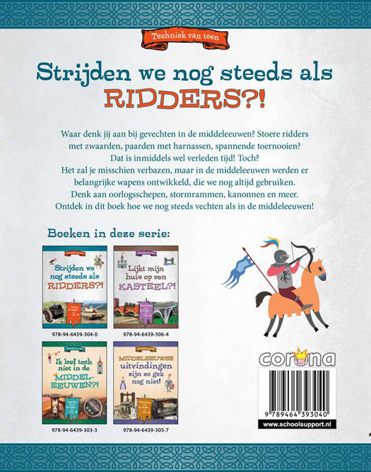 Dat is inmiddels wel verleden tijd! Toch? Het zal je misschien verbazen, maar in de middeleeuwen werden er belangrijke wapens ontwikkeld, die we nog altijd gebruiken. Denk aan oorlogsschepen, stormrammen, kanonnen en meer. Ontdek in dit boek hoe we nog steeds vechten als in de middeleeuwen!