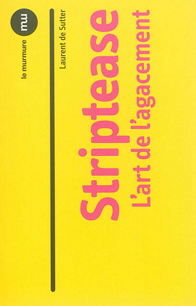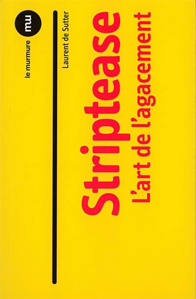 À rebours de ce que l'on imagine, le striptease n'a pas pour dernier moment la révélation de la nudité d'une femme, et la manifestation de la puissance érotique que cette nudité peut susciter, mais bien sa dissimulation. Il est l'incarnation de tout spectacle, en tant que LE spectacle (comme le proclamera Guy Debord), assomption du faux et de la fausseté par laquelle la société du spectacle tentait de maintenir le réel à distance. Ce qui est insupportable pour Barthes comme Mauriac par exemple est que le striptease affiche les signes de l'art sans en être un - et que ces signes rendent heureux ceux qui les consomment sans savoir. Au travers de cet essai, l'auteur retrace un historique de l'effeuillage tout en le repositionnant dans le discours des philosophes et penseurs du XXe siècle.