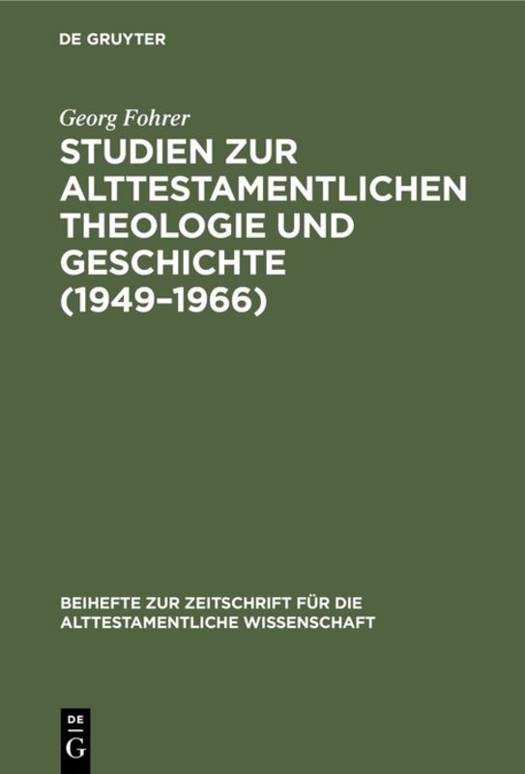 Studien Zur Alttestamentlichen Theologie Und Geschichte (1949-1966)