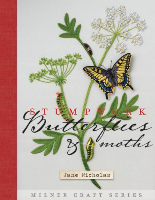 Following the popular Stumpwork Dragonflies and Stumpwork Beetles, Stumpwork Butterflies & Moths is the third in a series of stitched insect collections. Jane Nicholas has created a "specimen box" of jewels with 18 Lepidoptera, all chosen for interest, color, and to showcase an assortment of materials and techniques. There's everything from surface embroidery in lustrous silks for the Indian Moon Moth to stitched clear plastic for the Glasswing Butterfly.