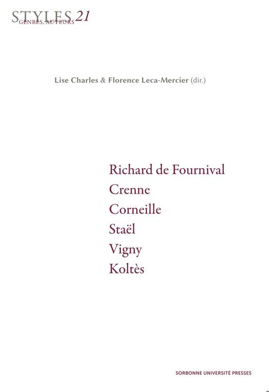 Cet ouvrage s'adresse à tous les étudiants préparant les agrégations de Lettres et de Grammaire. Se trouve ici réunie une série d’études consacrées au programme de la session 2025 des épreuves de grammaire et stylistique française : Le Bestiaire d’amour de Richard de Fournival, Les angoisses douloureuses qui procèdent d’amour d’Hélisenne de Crenne, Le Menteur, La Suite du Menteur et La Place Royale de Pierre Corneille, De la littérature de Mme de Staël, les Poèmes antiques et modernes et Les Destinées d’Alfred de Vigny, Dans la solitude des champs de coton et Combat de nègre et de chiens de Bernard-Marie Koltès. En appuyant leurs analyses sur des aspects linguistiques, lexicales, génériques ou poétiques, les contributeurs de ce volume illustrent l'apport de la lecture stylistique à l’interprétation des textes.