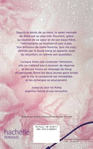 Depuis la mort de sa mère, Klara n’est plus la même, sa santé mentale est au plus mal. Mais grâce au soutien de sa sœur et de son beau-frère, elle remonte peu à peu la pente. Ce qui l’apaise le plus, c’est son rituel quotidien pour écouter l’émission de radio Suis ma voix. La voix du présentateur, Kang, un adolescent d’un an son aîné, et les débats qu’il anime la passionnent. Lorsque Klara ose contacter l’émission, elle ne s’attend pas à recevoir de réponse et encore moins un message privé de Kang en personne. Entre les deux adolescents brisés par la vie, la complicité est immédiate. Une lueur d’espoir signe d’amour naissant ?