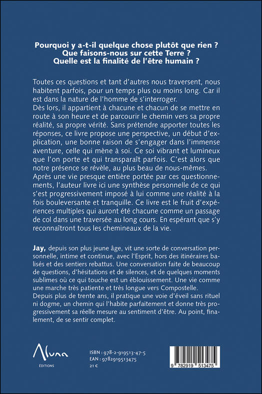 Pourquoi y a-t-il quelque chose plutôt que rien ? Que faisons-nous sur cette Terre ? Quelle est la finalité de l’être humain ? Toutes ces questions et tant d’autres nous traversent, nous habitent parfois car il est dans la nature de l’homme de s’interroger. Dès lors, il appartient à chacune et chacun de se mettre en route à son heure et de parcourir ce chemin vers sa propre réalité, sa propre vérité. Sans prétendre apporter toutes les réponses, ce livre propose une perspective, un début d’explication, une bonne raison de s’engager dans l’immense aventure, celle qui mène à soi. Ce soi vibrant et lumineux que l’on porte et qui transparaît parfois. C’est alors que notre présence se révèle, au plus beau de nous-mêmes. Après une vie presque entière portée par ces questionnements, l’auteur livre ici une synthèse personnelle de ce qui s’est progressivement imposé à lui comme une réalité à la fois bouleversante et tranquille. Ce livre est le fruit d’expériences multiples qui auront été chacune comme un passage de col dans une traversée au long cours. En espérant que s’y reconnaîtront tous les chemineaux de la vie.