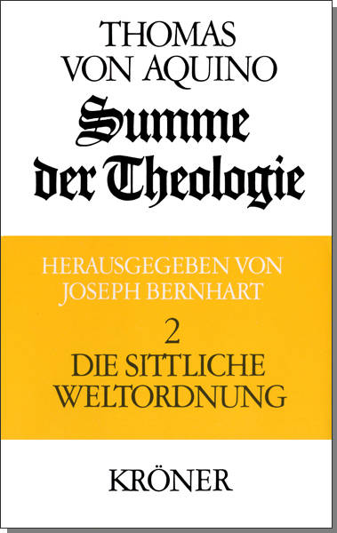 Die von Joseph Bernhart übersetzte 3-bändige Kröner-Ausgabe der 'Summa theologiae' bietet eine mit großem Sachverstand zusammengestellte Auswahl mit Einführungen, Zwischenberichten und erläuternden Anmerkungen, einem umfangreichen Glossar und Sachregister. Der zweite Band enthält 114 Abhandlungen über die sittliche Ordnung, über die Zweckmäßigkeit der Schöpfung, das höchste Gut und die Rechtfertigung des Menschen vor Gott.