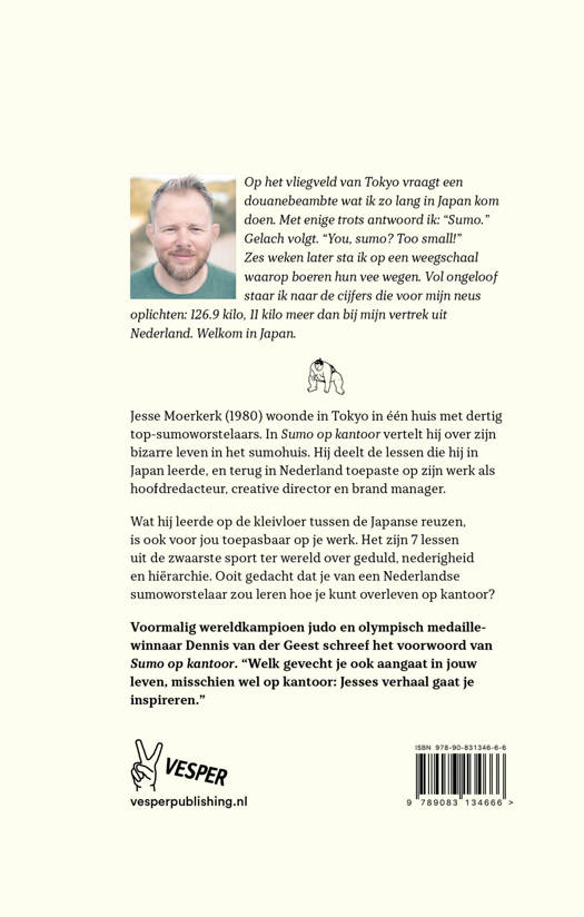 Jesse Moerkerk (1980) woonde in Tokyo in één huis met dertig top-sumoworstelaars. In 'Sumo op kantoor' vertelt hij over zijn bizarre leven in het sumohuis. Hij deelt de lessen die hij in Japan leerde, en terug in Nederland toepaste op zijn werk als hoofdredacteur, creative director en brand manager.