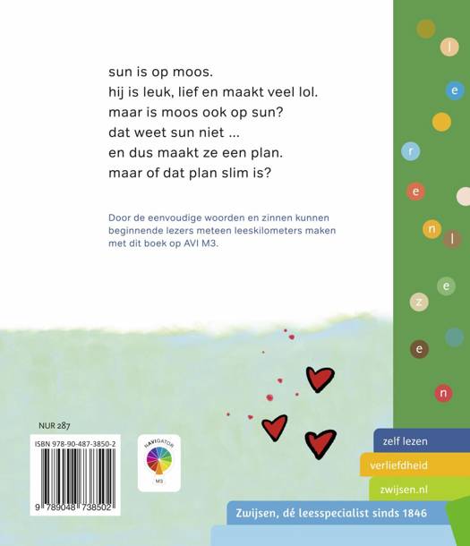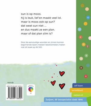 Aantrekkelijk leesboek op AVI M3, speciaal voor kinderen die net leren lezen. Over Sun die op Moos is. Maar is Moos ook op Sun? Door de korte woorden en eenvoudige zinnen kunnen beginnende lezers meteen leeskilometers maken.