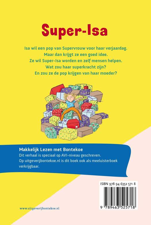 Isa wil een pop van Supervrouw voor haar verjaardag. Maar dan krijgt ze een goed idee. Ze wil Super-Isa worden en zelf mensen helpen. Wat zou haar superkracht zijn? En zou ze de pop krijgen van haar moeder? Grappig boek op AVI E4