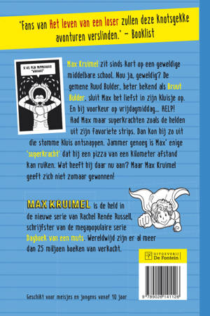 Max Kruimel zit sinds kort op een geweldige middelbare school. Nou ja, geweldig? Ruud Bulder, beter bekend als Bruut Bulder, wil niets liever dan Max in zijn kluisje opsluiten. En dat doet hij! Op vrijdagmiddag met het weekend voor de deur… Had Max maar superkrachten zoals de helden uit zijn stripboeken, dan kon hij uit die stomme kluis ontsnappen. Helaas is zijn enige talent dat hij pizza’s van een kilometer afstand kan ruiken. Maar Max Kruimel geeft zich niet zomaar gewonnen.
