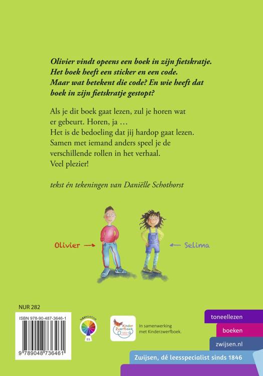 Olivier vindt opeens een boek in zijn fietskratje. Het boek heeft een sticker en een code. Maar wat betekent die code? En wie heeft dat boek in zijn fietskratje gestopt?