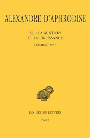English summary: Alexander of Aphrodisiass De mixtione, on the mixture of physical bodies and growth, is commonly seen as an important work against Stoic doctrine, and so an important source on the Stoics in its refutation of their physics. This critical edition and French translation, however, along with the thorough introduction, places De mixtione in its deserved place, based on its own exploration of the topic through Aristotelian thought, alongside works by Plutarch, Sextus Empiricus, and Plotinus. French description: Cette nouvelle edition du traite De mixtione d'Alexandre d'Aphrodise est la premiere qui soit veritablement critique depuis celle publiee par Ivo Bruns en 1892; malgre les qualites indeniables de cette derniere, le texte a pu etre ameliore en de nombreux passages sur la base d'un examen minutieux de la tradition manuscrite. L'introduction philologique du volume presente tous les temoins connus du traite, en fournit une description codicologique puis analyse les variantes textuelles pour aboutir a la constitution d'un nouveau stemma codicum. Le De mixtione d'Alexandre est surtout connu comme un requisitoire detaille contre la doctrine stoicienne du melange total et par consequent comme une source essentielle, mais pas forcement tres objective, sur cette derniere. Meme si la valeur documentaire du traite est considerable, l'introduction et le commentaire qui accompagnent cette edition s'efforcent de montrer que l'interet du De mixtione n'est pas seulement ou principalement celui d'une source textuelle de fragments sur les Stoiciens ou sur les theories du melange d'autres philosophes comme Democrite et Epicure, interet qui serait forcement proportionnel a la fidelite de la source aux doctrines qu'elle rapporte, mais aussi et surtout celui de la construction qu'Alexandre y opere du probleme du melange et de son histoire philosophique depuis les Presocratiques. Pour Alexandre, professeur de philosophie peripateticienne a Athenes, c'est bien sur Aristote qui, dans le De generatione et corruption, donne la solution definitive au probleme de savoir comment les corps se melangent, mais cela ne l'empeche pas de reconnaitre la difficulte de ce probleme et la necessite de proposer une veritable enquete philosophique sur les differentes doctrines qui s'affrontent. Ce sont les enjeux a la fois exegetiques et systematiques de cette enquete que s'efforce de reconstituer l'introduction du volume, en resituant la contribution decisive d'Alexandre dans le cadre plus large des discussions anciennes sur les differents modeles theoriques de melange, telles qu'on peut en trouver trace chez des auteurs comme Plutarque, Sextus Empiricus et Plotin.