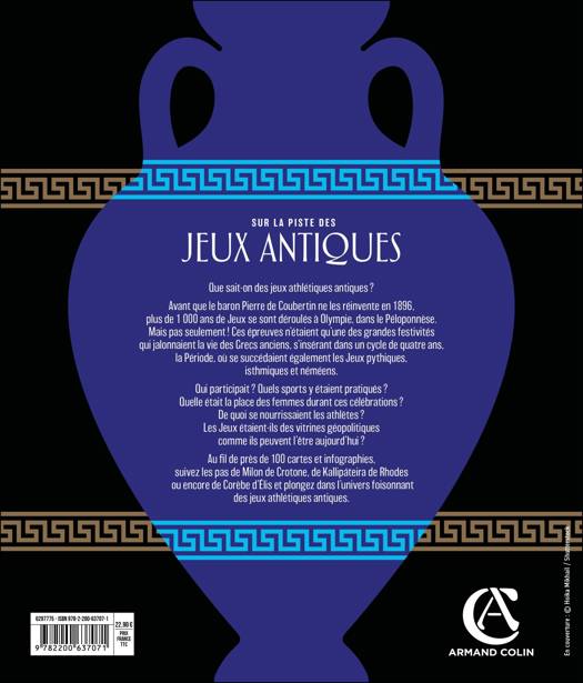 On connaît tous l’existence des jeux olympiques antiques. On sait que ce sont les Grecs qui les ont inventés, que ça a disparu, et que Pierre de Coubertin les a ressuscités à la fin du 19e siècle. Mais on ignore souvent qu’ils n’étaient que l’une des grandes festivités jalonnant la vie des Grecs anciens, s’insérant dans un cycle de quatre ans, la Période, où se succédaient les Jeux pythiques, isthmiques, néméens et olympiques. Que certains grands athlètes, comme Milon de Crotone, ont vu leur nom traverser les siècles. Que ces jeux, qui imposaient une trêve entre les cités grecques habituées à se faire continuellement la guerre, ont participé à une globalisation sans précédent du monde méditerranéen. Ce beau-livre, illustré d'infographies, de cartes, de frises chronologiques, de fiches de personnalités connues, apporte un nouvel éclairage sur ces jeux sportifs antiques : l'entraînement des athlètes, leur alimentation, les festivités qui accompagnent les épreuves, mais aussi la place des femmes dans ces Jeux ou les enjeux géopolitiques, qui permettent de relier le passé au présent.