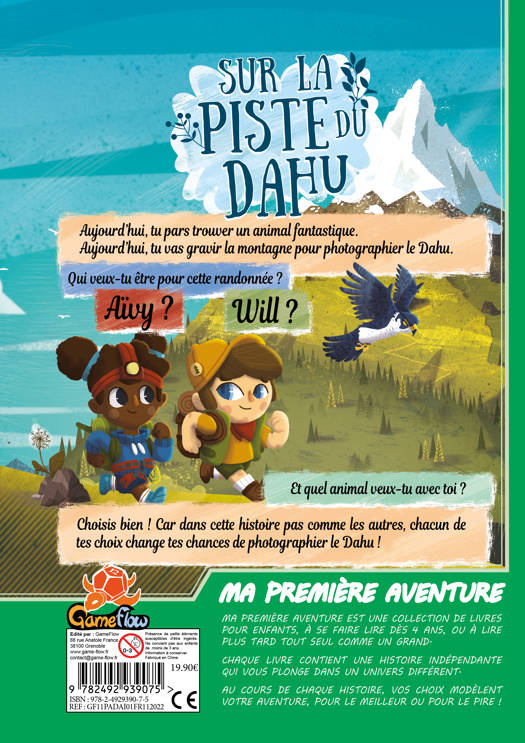 Maintenant, ton aventure peut commencer. Tu vas pouvoir lire ce livre normalement, de gauche à droite, mais rapidement, tu feras face à des choix matérialisés par des pages coupées en trois. Tourne la partie de ton choix et découvre ce qui va se passer. Après plusieurs choix, tu arriveras à la fin de ton aventure… Réussiras-tu à photographier le Dahu ?