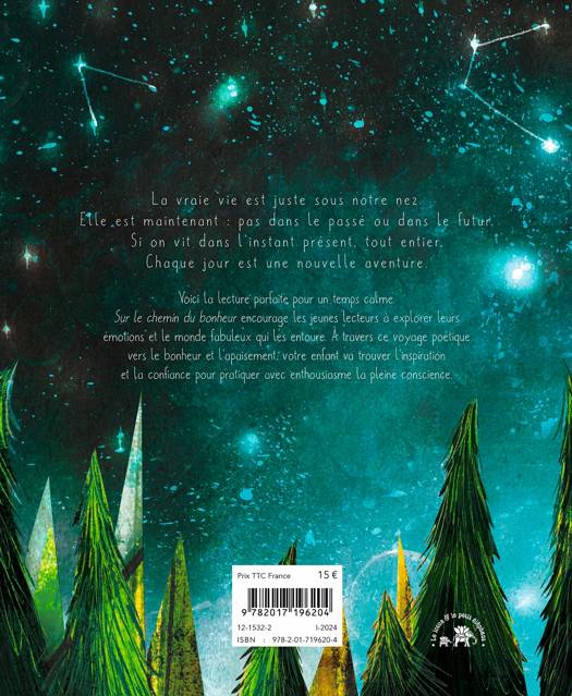 Voici la lecture parfaite pour un temps calme. Sur le chemin du bonheur encourage les jeunes lecteurs à explorer leurs émotions et le monde fabuleux qui les entoure. A travers ce voyage poétique vers le bonheur et l'apaisement, votre enfant va trouver l'inspiration et la confiance pour pratiquer avec enthousiasme la pleine conscience.