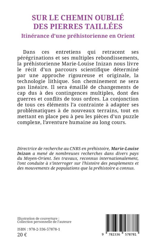 Dans ces entretiens qui retracent ses pérégrinations et ses multiples rebondissements, la préhistorienne Marie-Louise Inizan nous livre le récit d'un parcours scientifique déterminé par une approche rigoureuse et originale, la technologie lithique. Son cheminement ne sera pas linéaire. Il sera émaillé de changements de cap dus à des contingences multiples, dont des guerres et conflits de tous ordres. La conjonction de tous ces éléments l'a contrainte à adapter ses problématiques à de nouveaux terrains, tout en mettant en place peu à peu les pièces d'un puzzle complexe, l'aventure humaine au long cours.