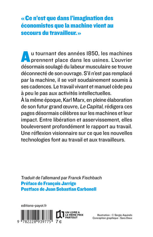 Au tournant des années 1850, les machines prennent place dans les usines. L'ouvrier désormais soulagé du labeur musculaire se trouve déconnecté de son ouvrage. S'il n'est pas remplacé par la machine, il se voit soudainement soumis à ses cadences. Le travail vivant et manuel cède peu à peu le pas aux activités intellectuelles. À la même époque, Karl Marx, en pleine élaboration de son futur grand oeuvre, "Le Capital", rédigera ces pages désormais célèbres sur les machines et leur impact. Entre libération et asservissement, elles bouleversent profondément le rapport au travail. Une réflexion visionnaire sur ce que les nouvelles technologies font au travail et aux travailleurs.