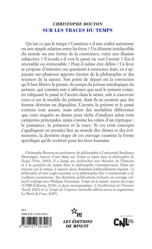 Qu’est-ce que le temps ? Constitue-t-il une réalité autonome ou une simple relation entre les êtres ? Un élément irréductible du monde ou une forme de la conscience, voire une illusion subjective ? S’écoule-t-il vers le passé ou vers l’avenir ? Est-il réversible ou irréversible ? Peut-il même être défini ? Ce livre se propose d’instruire ces questions à nouveaux frais, en s’appuyant sur plusieurs apports récents de la philosophie et des sciences de la nature. Son point de départ est la conviction qu’il faut libérer la pensée du temps du primat ontologique du présent, qui consiste soit à affirmer que seul le présent existe, en reléguant le passé et l’avenir dans le néant, soit à concevoir ceux-ci sur le modèle du présent, dont ils ne seraient que des formes dérivées ou dégradées. L’avenir, le présent et le passé existent tout autant, mais selon des modalités différentes que cette enquête se donne pour tâche d’analyser selon trois catégories principales, unies comme les volets d’un triptyque : la puissance, la présence et la trace. Si ces trois concepts s’appliquent en premier lieu au monde des choses et des événements, la dernière étape de cet ouvrage examine la forme spécifique qu’ils revêtent pour les êtres humains.