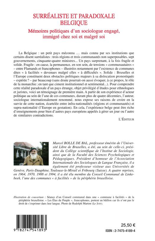 La Belgique : un petit pays connu par ses institutions que certains disent surréalistes : trois régions et trois communautés non superposables, sept gouvernements, cinquante-quatre ministres... Pour comprendre cette réalité paradoxale d'un pays étrange, objet privilégié d'études pour ethnologues et juristes, voici un témoignage de première main. A partir de son expérience d'acteur politique, l'auteur, sociologue internationalement renommé, nous expose ses raisons de croire en la survie de cette nation, écartelée entre infra-nationalités et supra-nationalités.