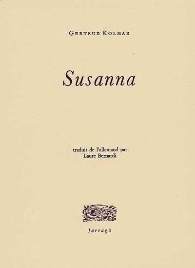 Cousine de Walter Benjamin, Gertrud Kolmar (1894-1943) a été récemmenet redécouverte en allemagne. Susanna, son dernier texte composé en 1939 avant son départ pour Auschwitz, met en scène la rencontre d'une gouvernante et de son élève, une jeune fille très belle mais perturbée mentalement.