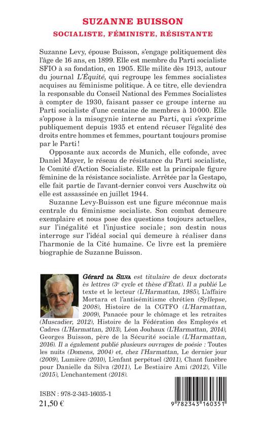 Suzanne Levy-Buisson, dont ce livre est la première biographie, est une figure méconnue mais centrale du féminisme socialiste français. Son combat demeure exemplaire et nous pose des questions toujours actuelles, sur l'inégalité et l'injustice sociale ; son destin nous interroge sur l'idéal social qui demeure à réaliser dans l'harmonie de la Cité humaine.