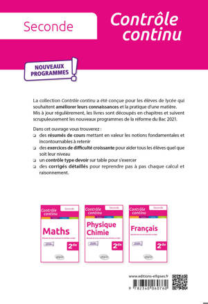 La collection Contrôle continu a été conçue pour les élèves de lycée qui souhaitent améliorer leurs connaissances et la pratique d'une matière.