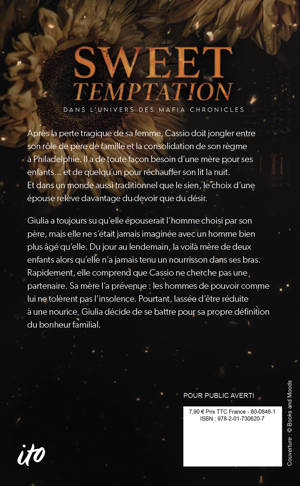 Après la perte tragique de sa femme, Cassio doit jongler entre son rôle de père de famille et la consolidation de son règne à Philadelphie. Il a de toute façon besoin d'une mère pour ses enfants... et de quelqu'un pour réchauffer son lit la nuit. Et dans un monde aussi traditionnel que le sien, le choix d'une épouse relève davantage du devoir que du désir. Giulia a toujours su qu'elle épouserait l'homme choisi par son père, mais elle ne s'était jamais imaginée avec un homme bien plus âgé qu'elle. Du jour au lendemain, la voilà mère de deux enfants alors qu'elle n'a jamais tenu un nourisson dans ses bras. Rapidement, elle comprend que Cassio ne cherche pas une partenaire. Sa mère l'a prévenue : les hommes de pouvoir comme lui ne tolèrent pas l'insolence. Pourtant, lassée d'être réduite à une nourrice, Giulia décide de se battre pour sa propre définition du bonheur familial.