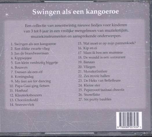 Swingen als een kangoeroe is een bonte verzameling nieuwe kinderliedjes. Gevarieerd in onderwerp, stijl en sfeer zoals je van Jeroen Schipper gewend bent. Professionele muzikanten en studio zorgen voor een top-cd. Bereid je voor om hem keer op keer op keer te moeten horen...