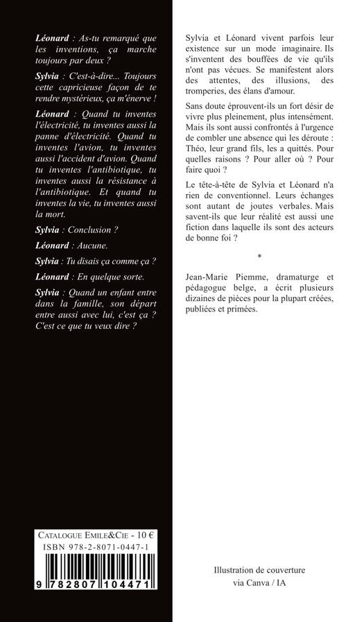Sylvia et Léonard vivent parfois leur existence sur un mode imaginaire. Ils s'inventent des bouffées de vie qu'ils n'ont pas vécues. Se manifestent alors des attentes, des illusions, des tromperies, des élans d'amour. Sans doute éprouvent-ils un fort désir de vivre plus pleinement, plus intensément. Mais ils sont aussi confrontés à l'urgence de combler une absence qui les déroute : Théo, leur grand fils, les a quittés. Pour quelles raisons ? Pour aller où ? Pour faire quoi ? Le tête-à-tête de Sylvia et Léonard n'a rien de conventionnel. Leurs échanges sont autant de joutes verbales. Mais savent-ils que leur réalité est aussi une fiction dans laquelle ils sont des acteurs de bonne foi ?
